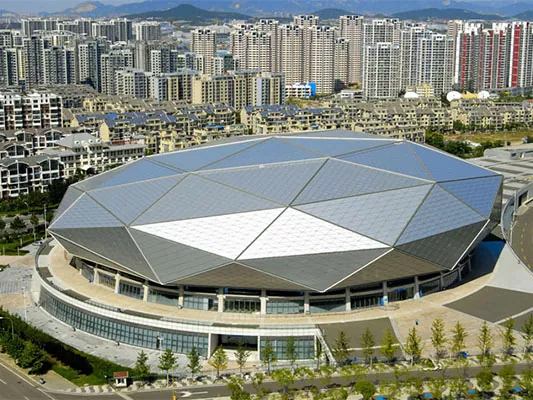 Kusinthasintha ndi Kusinthasintha: Ntchito yomanga Stadium yokhala ndi chitsulo ndi njira zosinthika komanso njira zosinthira. Zigawo zikuluzikulu zitha kupangidwa ndikupangidwa kuti zithetse zosowa zake ndi zofunikira za bwaloli, kuphatikizapo kupindika, mawonekedwe, ndi malo opindika. Izi zimathandiza kuti kupangidwa kwa zisudzo zapadera komanso zatsopano komanso zogwirizana ndi zomwe zili komanso zokopa.